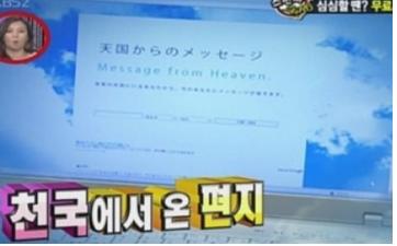 이 사이트는 "천국의 메시지는 오락으로 즐기세요. 메시지의 내용에 우울하지 마세요"라는 당부의 말을 적어놓기도 했다. 모든 내용은 일본어로 돼 있다. (사진=KBS 방송 캡처)