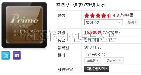 12일 서울 동작구 흑석동에 사는 이 모(남.40세)씨는 지난달 말 KT의 올레마켓을 통해 두산동아 프라임 영한 한영사전 어플을 1만6천900원에 구입했다.