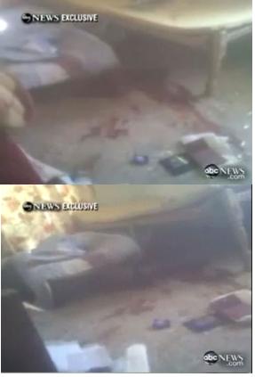 이 영상에서는 오사마 빈라덴의 은신처에 미군의 돌입 당시 인간 방패로 삼은 부인의 혈흔 자국이 남아있어 격렬했던 순간을 짐작케 한다.