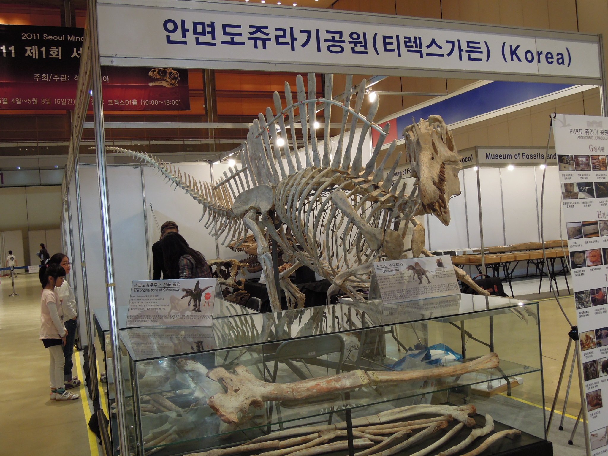안면도 쥬라기 공원(대표 임태영)은 4일 개관한 미네랄쇼에 세계적으로 3~4종만 남아 있는 스피노사우루스(뿔을 가진 도마뱀) 진품 골격을 비롯 타페자라, 타르보사우루스, 가마우지등 10여종의 진품 공룡을 선보였다.