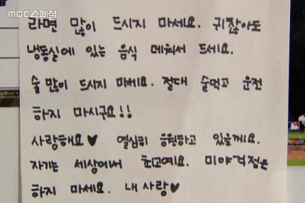추신수의 아내 하원미 씨는 과거 MBC 스페셜을 통해 남편 추신수에게 남긴 음주운전과 관련된 메모를 공개한 바 있다.