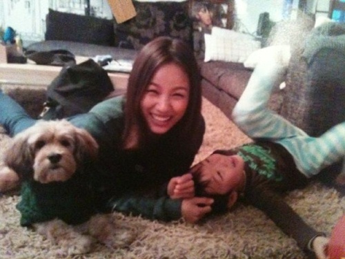 공개된 사진 속에서 이효리는 조카와 분려동물 순심이와 함께 거실 바닥에 엎드려 환하게 웃고 있다.