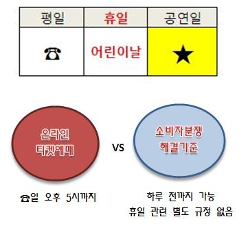 티켓예매에 관한 소비자분쟁해결기준과 온라인 티켓예매업체의 약관이 미묘한 차이를 보여 소비자들에게 혼란을 주고 있다.