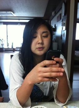 솔비는 6일 오전 자신의 트위터에 "이놈의 스마트폰 어디서 연애질이냐"라는 글과 함께 집안에서 편안한 차림으로 촬영한 친언니의 사진을 올렸다.