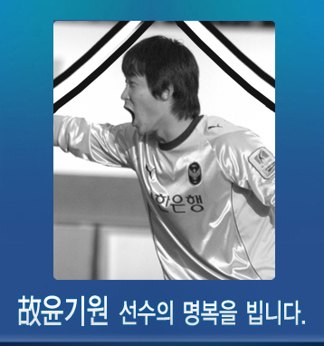 인천 유나이티드FC 홈페이지 메인페이지에는 현재 윤 선수가 살아 생전 경기를 펼치고 있는 모습을 담긴 사진과 함께 '故윤기원 선수의 명복을 빕니다'라는 글귀가 게시돼 있다.