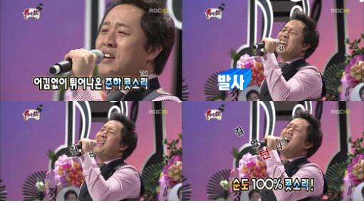 당시 김 PD는 비음이 과해 노래를 코로 부른다는 뜻에서 정준하의 코에서 ‘허언젠가~’, ‘외로흠의 끝은~’ 등 가사가 한 자씩 나오는 CG를 연출해 또 다시 큰 웃음을 줬다.(사진=MBC 캡처)