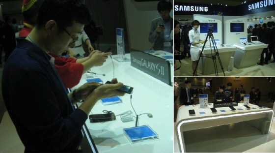 삼성전자는 이번 '월드 IT쇼'에서 지난달 말 출시한 전략 스마트폰 '갤럭시S2', 자사의 '바다OS'를 기반으로 한 '웨이브2'를 비롯하여 '갤럭시탭', '갤럭시 플레이어' 등을 선보였다.