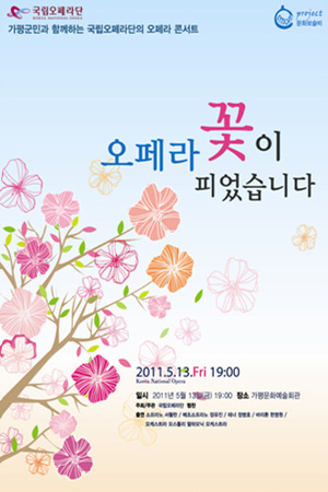 국립오페라단은 지난 2009년부터 ‘오페라 꽃이 피었습니다’를 통해 전국 방방곡곡을 돌며 ‘찾아가는 문화나눔’을 실천하고 있다. 2011년에는 가평을 시작으로 경북 문경, 전남 강진을 찾아가 오페라 꽃을 피울 예정이다.