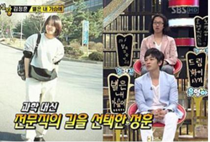 김정훈은 지난 10일 방송된 SBS TV '강심장'에 출연해 초등학교 시절부터 고등학교 때까지 과학자의 길을 꿈꿨었다고 고백했다.