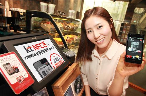 KT는 카페베네 전국 563개 매장에서 근거리 무선통신(NFC) 기능이 탑재된 스마트폰으로 방문 도장을 받을 수 있는 모바일 스탬프 서비스를 제공한다.