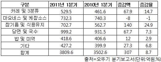 올 1분기 호실적을 견인한 것은 참기름, 당면 및 국수류, '3분 카레' 등 즉석식품류다.