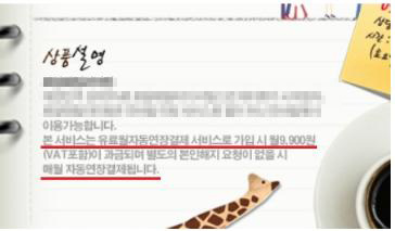 취재 결과, 이 씨가 개인정보를 입력한 창의 하단에는 작은 글씨로 결제 안내문구가 게재돼 있었다. 하지만 쉽게 눈에 띄지 않아 꼼꼼하게 살펴보지 않은 이 씨는 전혀 눈치 챌 수 없었던 것.