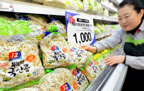 홈플러스(회장 이승한)는 오는 19일부터 25일까지 전국 123개 점포에서 국내산 무농약 콩나물(400g)과 수입산 콩나물(1㎏)을 1천원에 선보인다고 18일 밝혔다. 한정판매 상품으로 한 사람이 하루에 2봉지만 살 수 있다.