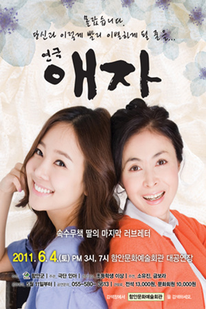연극 ‘애자’가 오는 6월 4일 함안문화예술회관 대공연장에서 공연된다.