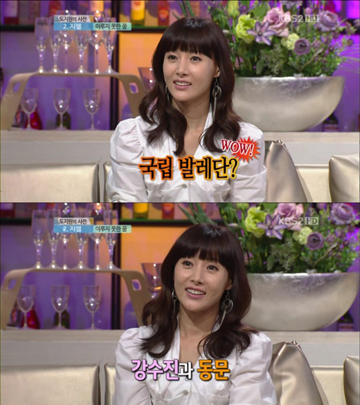 도지원은 17일 방송된 KBS 2TV ‘승승장구’에 출연해 국립발레단의 발레리나였다는 사실과 함께 강수진과 발레 동문이라고 밝혔다.