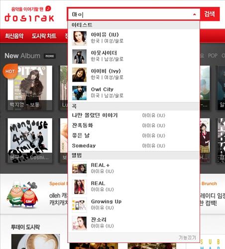 특히 검색어 하나로 가수(아티스트), 곡, 앨범, 뮤직비디오, 공개앨범, 가사 등 카테고리에서 정보를 찾아주는 것은 물론 트위터 등 소셜네트워킹서비스(SNS)에 남겨진 음악정보까지 알려준다.