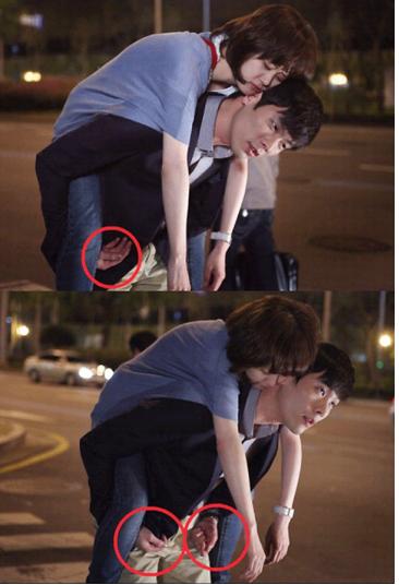 최다니엘은 술취한 장나라를 엎으며 손을 장나라의 다리에 두지않고 주먹을 쥐거나 안쪽으로 접어 상대 여배우를 배려했다.
