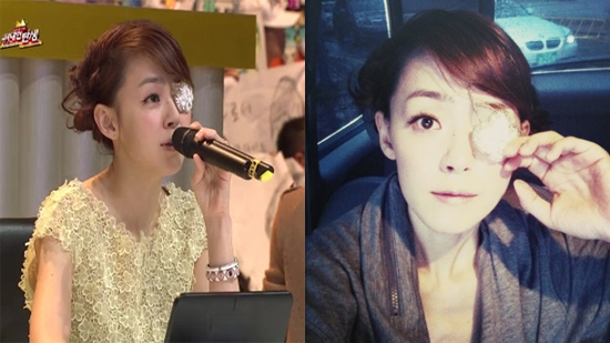 지난 20일 김윤아는 신경마비 증세로 안대를 한 채 방송에 출연했다. 바이러스성 안면마비로 왼쪽 눈과 입이 움직이지 않았지만 안대를 하고 방송에 출연하는 등 투혼을 발휘한 것.
