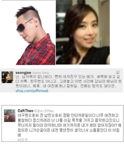 이에 디테오는 9일 소속사를 통해 “일이 더 이상 확대되는 것을 원치 않는다”며 “계속되는 논란은 송지선을 다치게 할 뿐”이라고 밝혔다. (사진=송지선, 이성수 트위터)