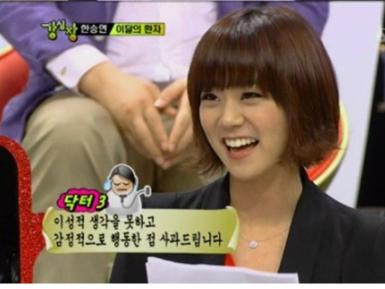 24일 방송된 SBS TV '강심장'에 출연한 한승연은 의사선생님들의 인기를 한몸에 받았던 에피소드를 공개했다.