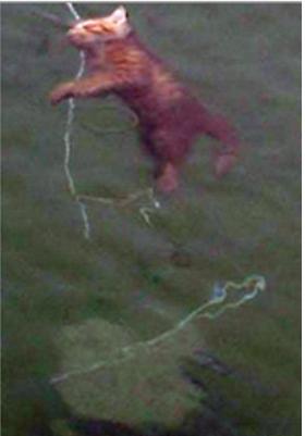지난 21일 포항 북구 방어리 방파제에서 다리에 돌이 묶인 채 물에 빠진 고양이가 발견됐다.
