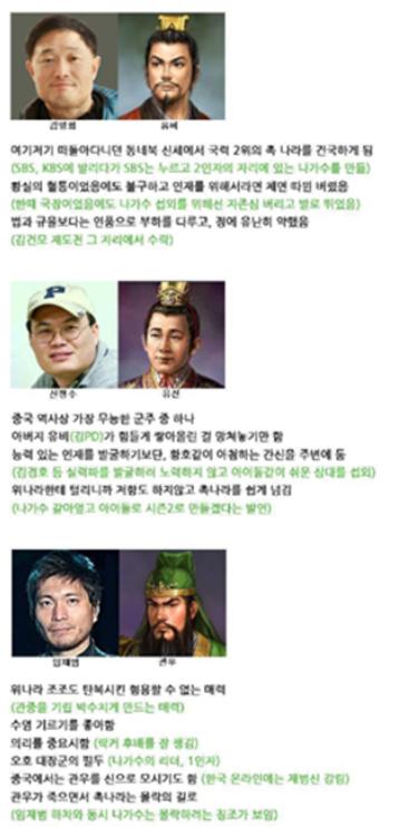 이 나가수 삼국지 패러디는 나가수 PD와 가수들을 삼국지에 등장하는 캐릭터와 비교해 놓아 폭발적인 관심을 모으고 있다.