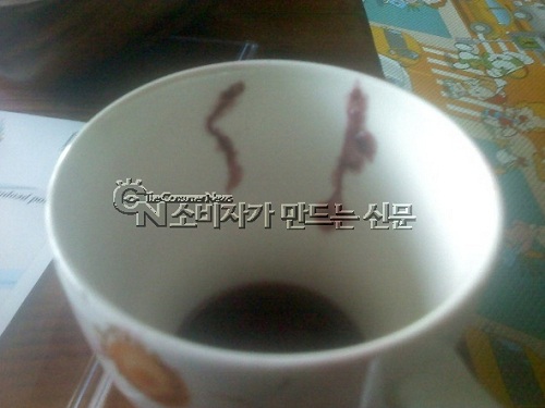 컵에 묻은 검붉은 곰팡이를 보고 불쾌해진 정 씨는 곧장 업체 측에 이 사실을 알렸다.