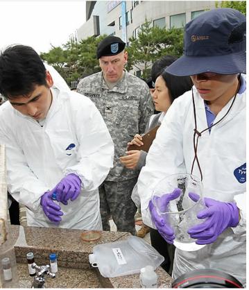 한편, 칠곡군은 검출된 다이옥신이 고엽제에 의한 것인지 밝히기 위해 2차 정밀검사 중이며, 이와는 별도로 한미 양국은 오늘 오후 해당 미군기지 주변 10여 곳에서 지하수 표본을 채취해 환경검사를 실시할 예정이다. (사진=연합뉴스)