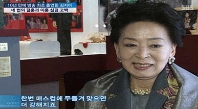 배우 김지미가 네 차례 이혼을 겪은 심경을 고백했다.
