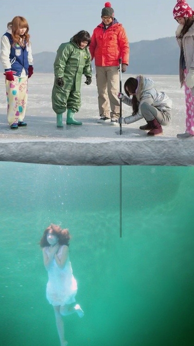 사진에는 물 속에 빠져 고통스럽게 발버둥을 치고 있는 효민과 이를 구하기 위해 얼음을 깨고 막대기를 집어넣고 있는 구하라의 모습이 담겨있다.