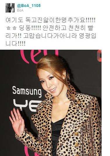가수 보아는 5월 28일 자신의 트위터에 “여기도 독고진앓이 한 명 추가요. 딩동! 안전하게 천천히 빨리 가! 고맙습니다가 아니라 영광입니다”라는 글을 올렸다.