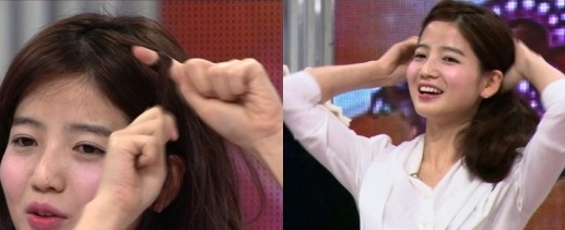 차홍은 머리카락에 분무를 한 다음 검지손가락으로 돌돌 말았다. 이후 손가락을 뺀 뒤 돌린 부분을 손으로 움켜잡아 이 부분을 드라이기를 이용, 뜨거운 바람으로 고정시켰다. 검지손가락 하나로 웨이브를 넣을 수 있는 이 검지 웨이브 비법은 V라인과 동안미모를 갖게해주는 효과를 준다고.