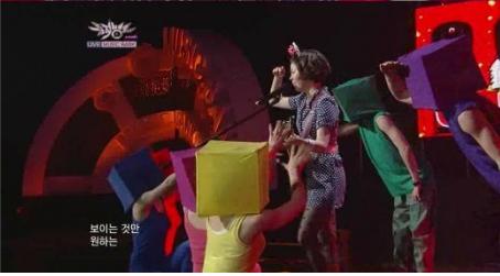 형광색의 전신 타이즈를 입고 머리에 박스를 쓴 쫄쫄이 댄서단은 노래 후렴구에서 다리를 현란하게 교차시키는 ‘개다리춤’을 선보여 웃음을 선사했다. 또 이들은 분주하게 무대를 오가며 역동적인 분위기를 연출했다.