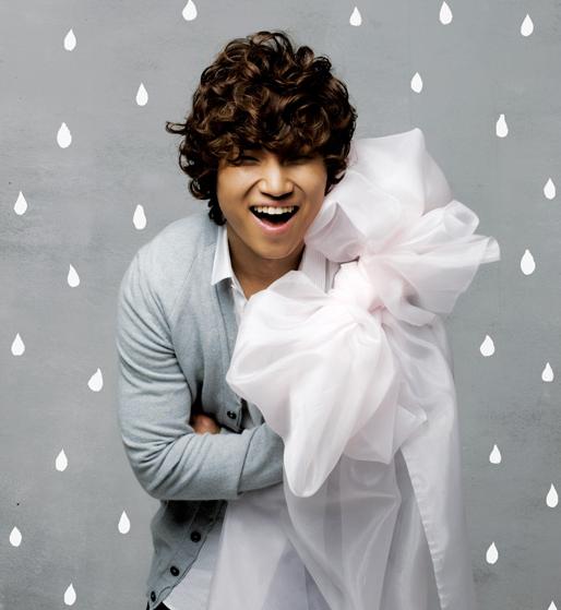 사진 속 대성은 포근한 흰색 구름을 배경으로 양팔을 벌린 채 환한 미소를 짓고 있다.