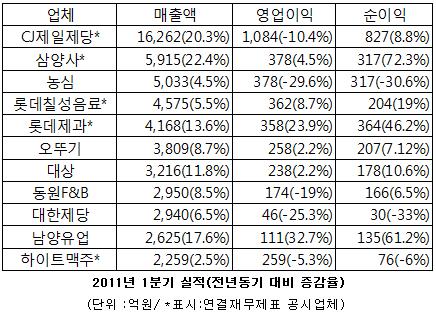 올 1분기 주요 식음료 업체들의 성적표가 공개되면서 희비가 엇갈리고 있다.
