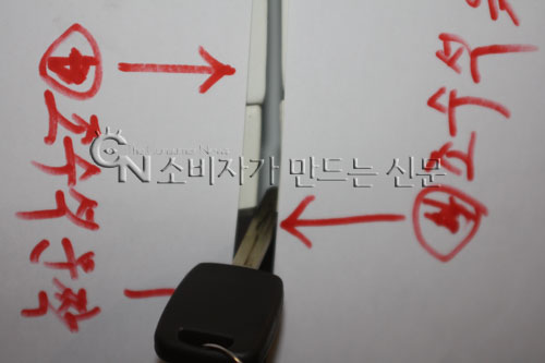 처음에는 조립된 외부 강판 사이로 내부 부품이 훤히 들여다보일 정도로 간격이 넓었다. 수차례 걸쳐 조정 작업을 했지만 여전히 차량키의 넓은 면이 들어갈 정도로 단차가 심하다는 게 이 씨의 설명이다.
