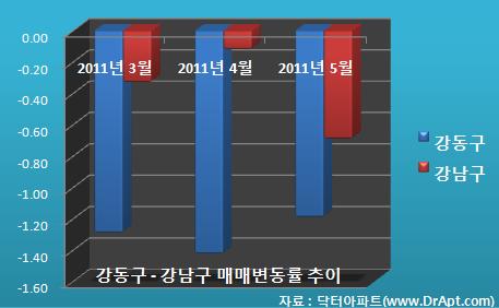 같은 시기 인근 강남구의 변동률이 △-0.33 △-0.12 △-0.69를 기록한 것만 보더라도 강동구의 하락세를 짐작할 수 있다.