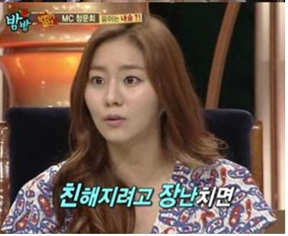 이에 대해 유이는 "애프터스쿨 멤버들이 잘 놀아주지 않아 친해지려고 그런건데 장난을 치면 받아주지도 않고 그냥 가버려 무안하다"고 설명했다. (사진=SBS 방송 캡처)