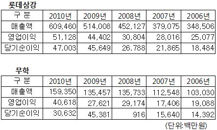롯데삼강은 5년 전 매출액과 영업이익은 각각 3천485억원, 250억7천만원에 불과했다. 그러나 지난해 매출액과 영업이익이 200%가량 증가한 6천95억원, 511억3천만원을 달성했다. 이에 따라 순이익도 지난 2006년 대비 154%나 늘어났다.