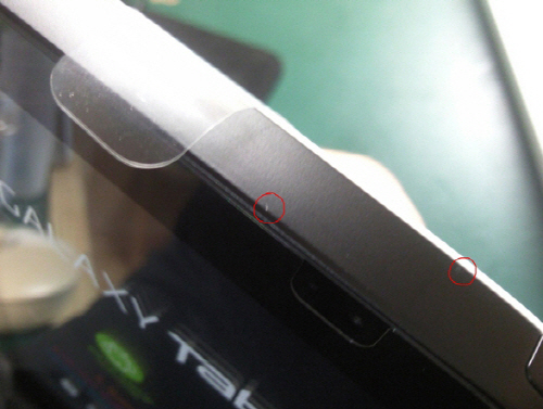 막 구입한 갤럭시탭에서 연이어 흠집이 발견돼 소비자가 '포장 및 제품 검수의 허술함'을 지적하며 실망감을 감추지 못했다.