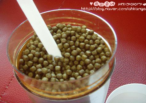 탈환제품 뚜껑을 개봉해보았더니, 흰색 스푼 하나가 꽂혀 있네요. 동글동글 작고 귀여운 알맹이들이 한가득 담겨있는 탈환이 눈에 띕니다.