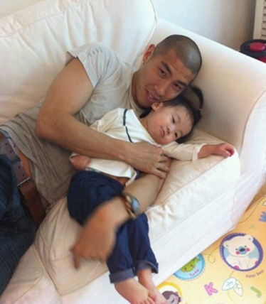 사진 속 차두리는 소파에 누워 딸 아이를 끌어안고 편안한 미소를 띄고 있고 딸의 모습은 입술을 삐죽 내밀고 새침하게 누워있다.