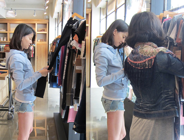 공개된 직찍에서 이시영은 후드 티셔츠와 핫팬츠 등 편안한 복장으로 한 매장에서 쇼핑을 즐기고 있다.