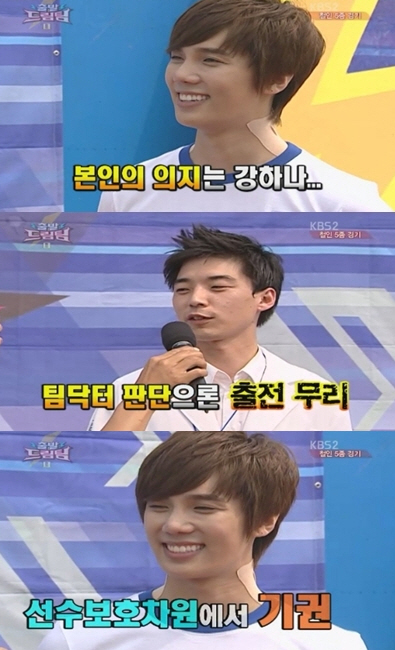 박정민은 출전하겠다는 뜻을 고집했으나 팀닥터는 선수보호차원에서 이를 제지해 결국 기권처리됐다. (사진=KBS 2TV 방송캡쳐)