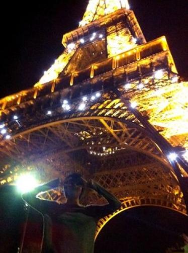 슈퍼주니어 멤버 김희철이 에펠탑 방문 인증사진을 남겼지만 역광이라 얼굴을 알아보기 힘들어 화제가 되고 있다.