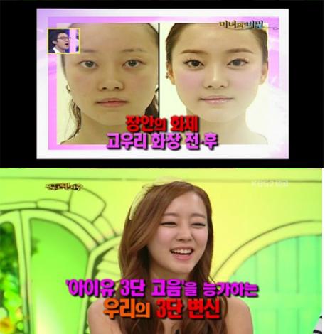 고우리는 “가수 아이유에게 3단고음이 있다면 나에게는 3단 화장술이 있다. 민낯부터 풀메이크업까지 3단계가 있다. 이게 3단 변신을 한 것이다”고 말했다.