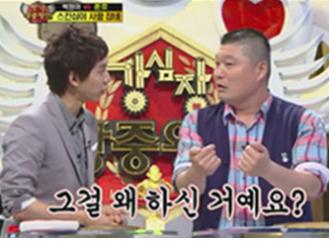 이에 MC이승기는 강호동에게 "그걸 왜 하신거예요?"라고 물어 강호동을 당황하게 만들었다. (사진=SBS 방송 캡처)