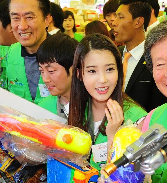 16일 서울 상암동 홈플러스에서 열린 '착한 나눔 바자회'에는 행사 격려차 가수 아이유와 우민, 강호동이 들렀다.