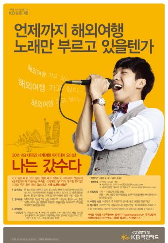 참가 희망자는 오는 18일부터 28일까지 KB국민카드 홈페이지에서 여행기획서 양식을 다운 받아 이메일(kmc20025@kbcard.com/ kbrockstar@kbstar.co.kr)로 신청하면 된다.