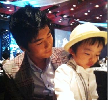 기성용은 자신의 무릎 위에 김남일의 아들 서우군을 앉히고 사랑스럽게 바라보고 있다.